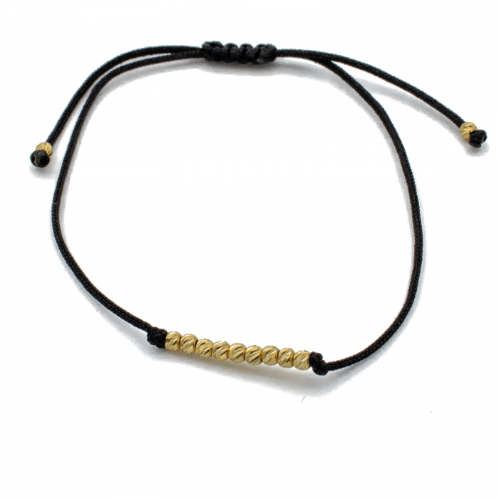 Bratara 11 bile din Aur 14k cu snur Negru
