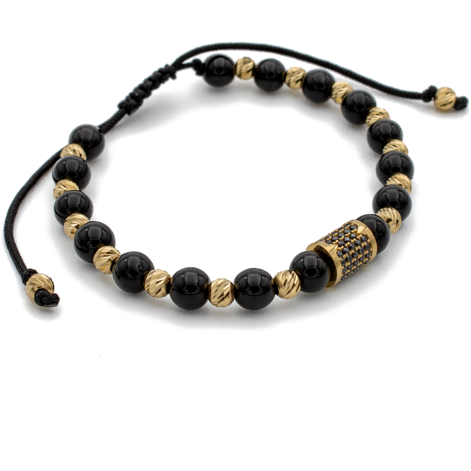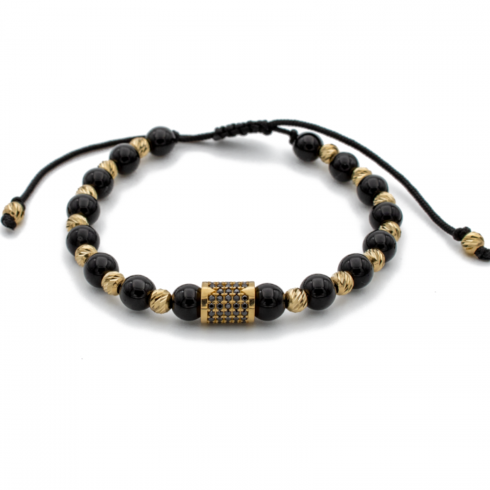 Bratara cu bile din Aur 14k, bile Onix si snur Negru