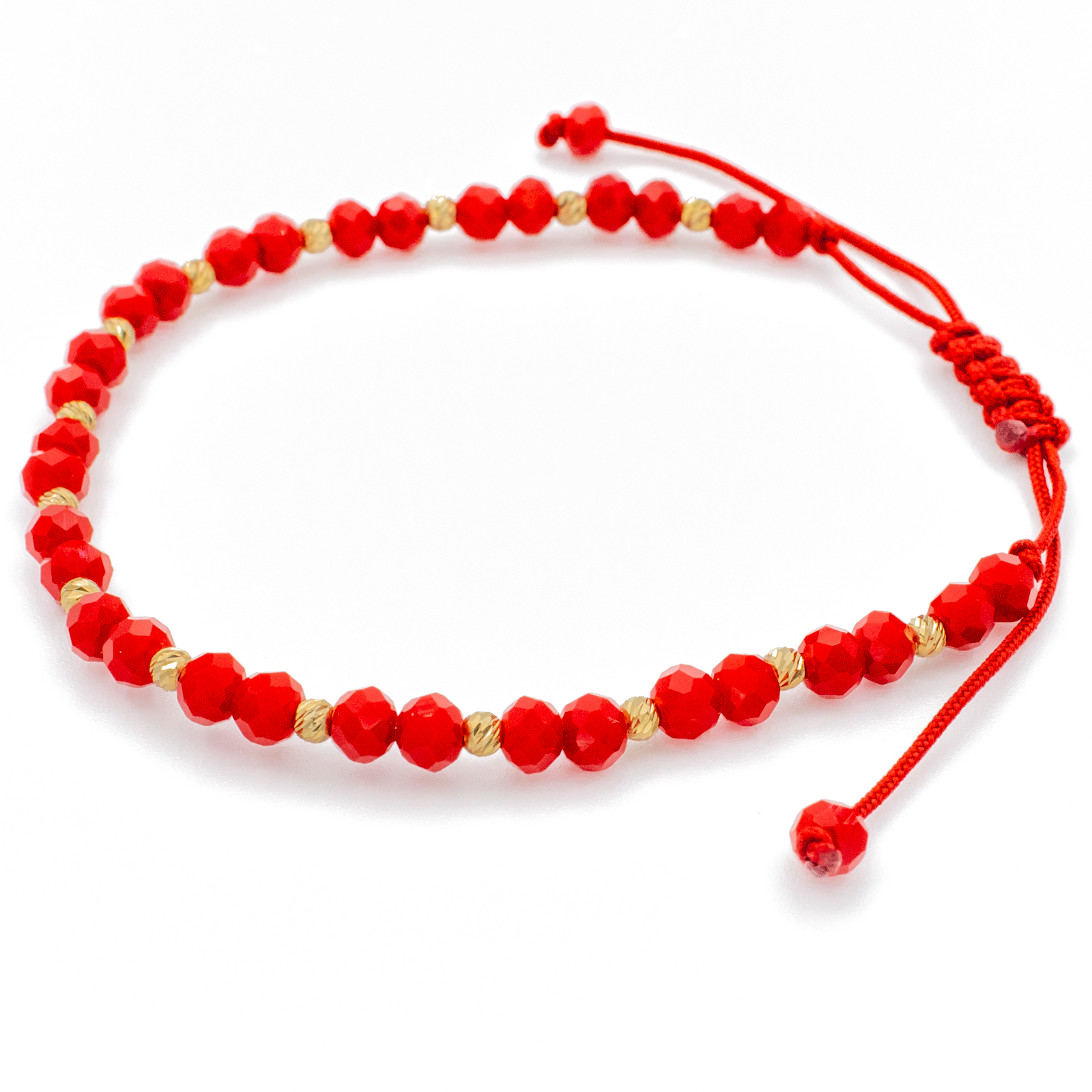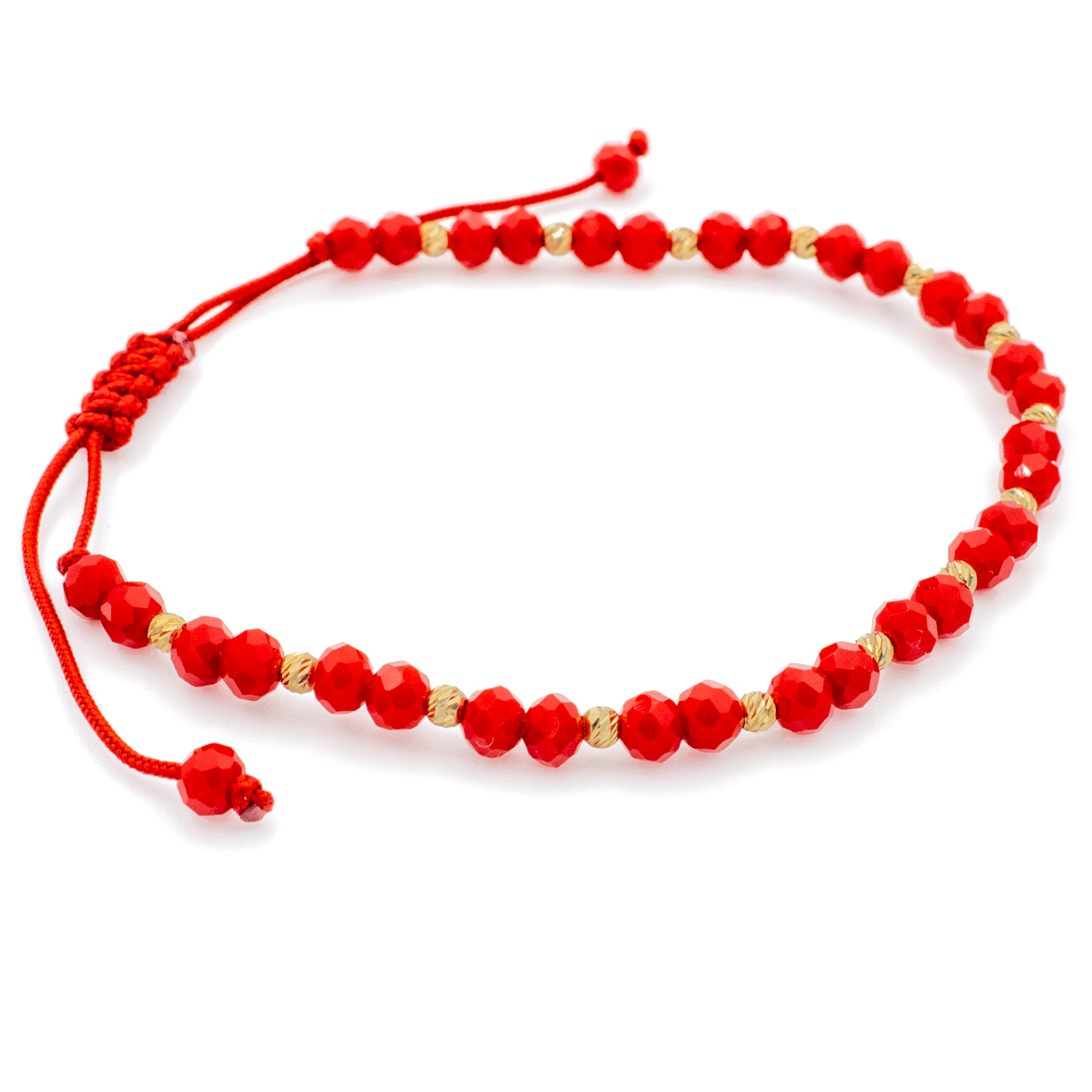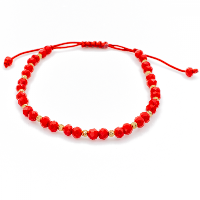 Bratara cu bile din Aur 14k, bile Onix si snur Rosu