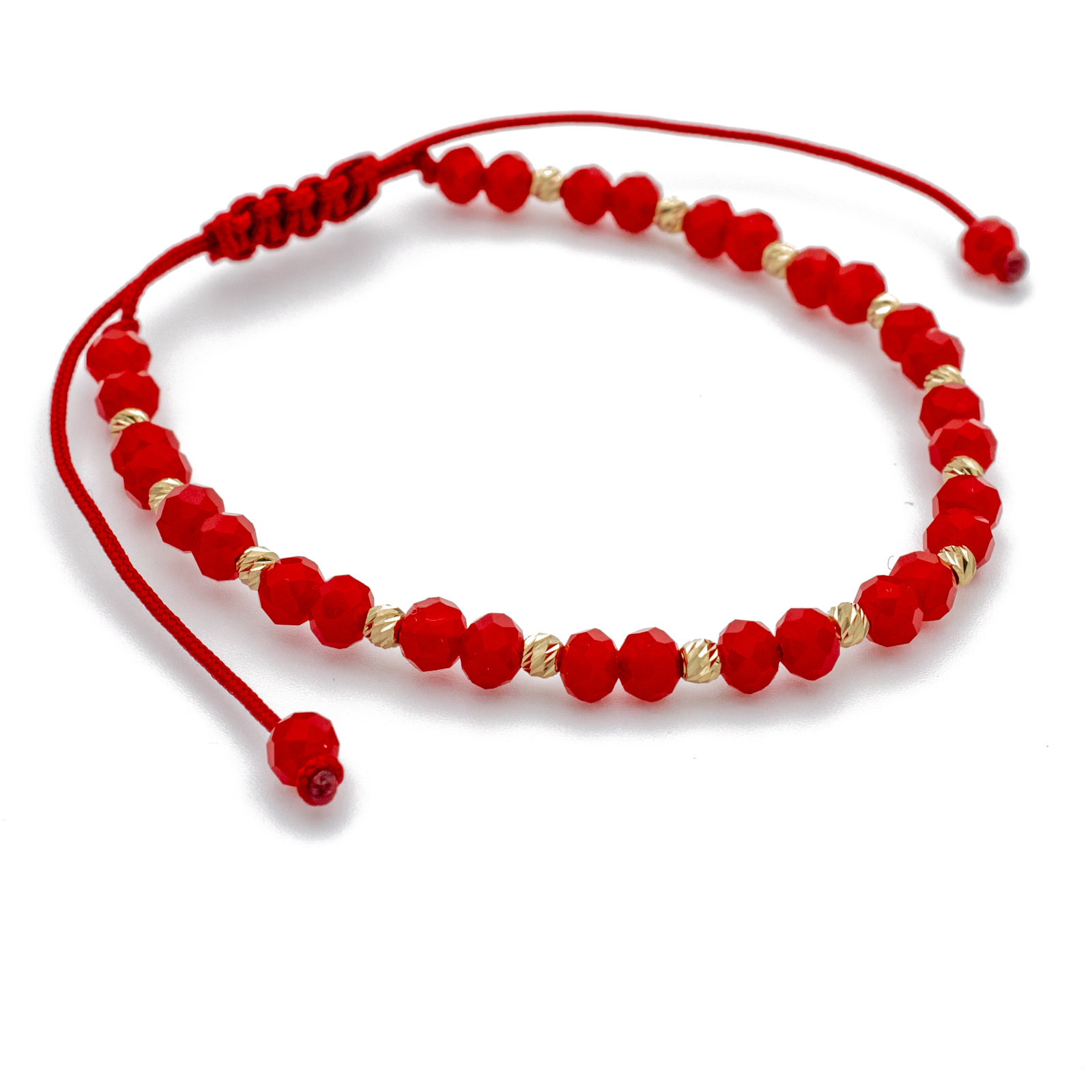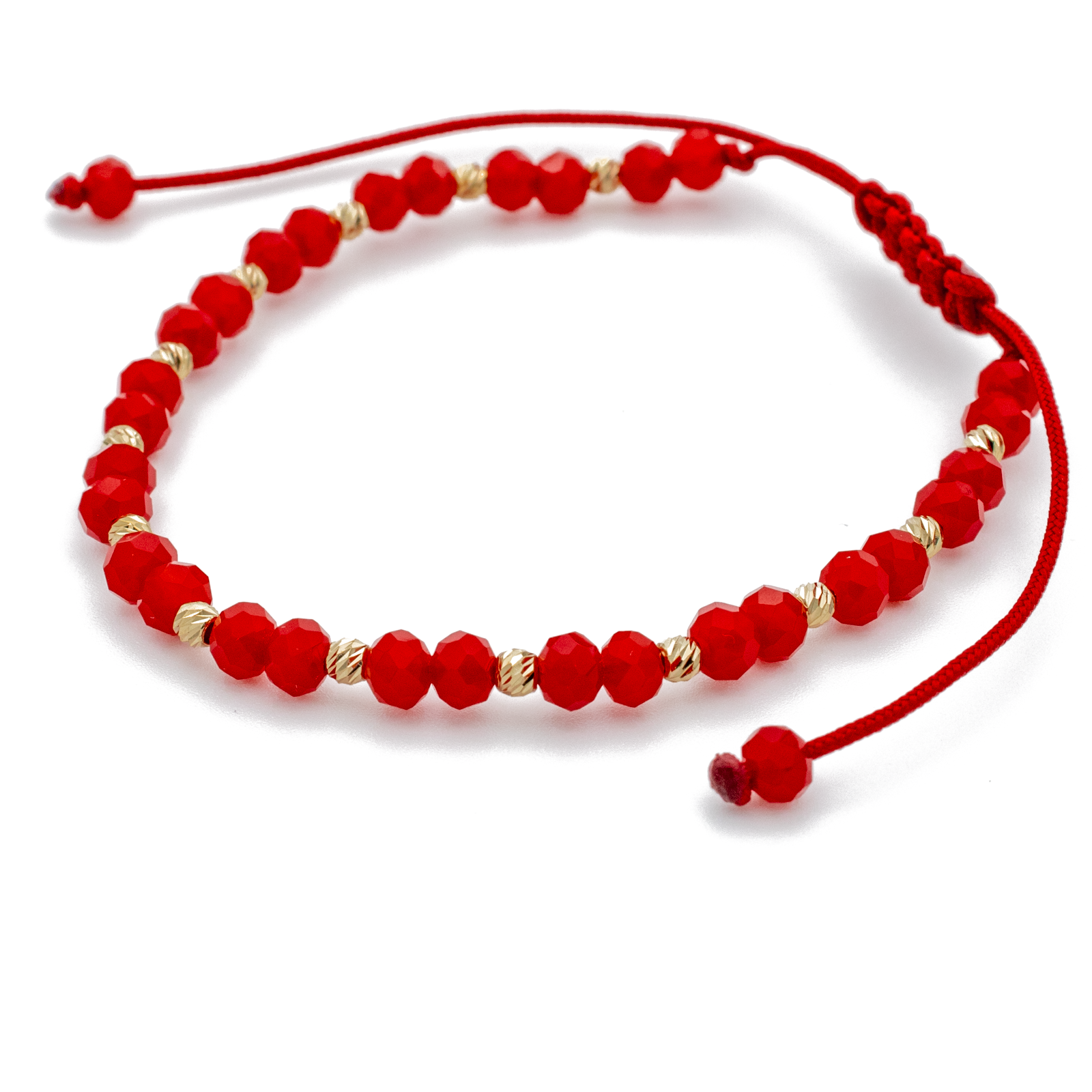 Bratara cu bile din Aur 14k, bile Onix si snur Rosu