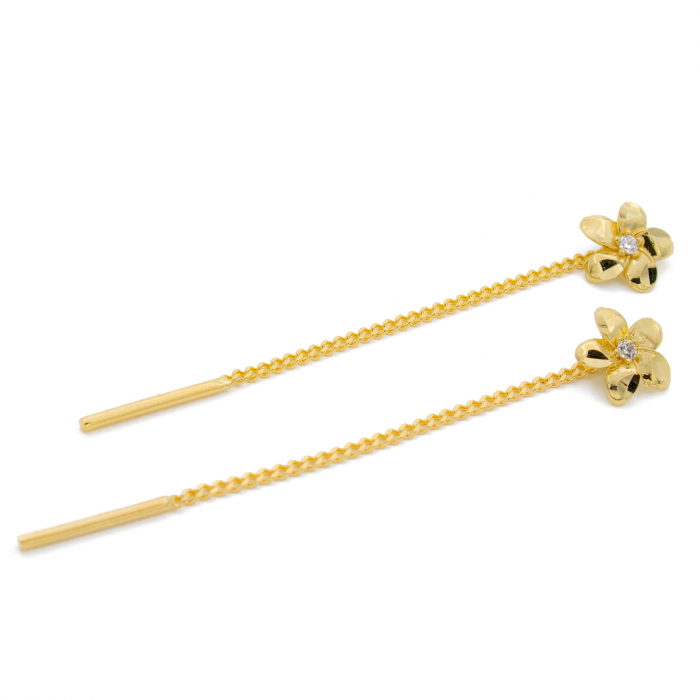 Cercei Floare cu Lant Aur 14k