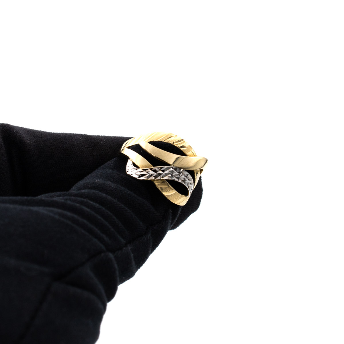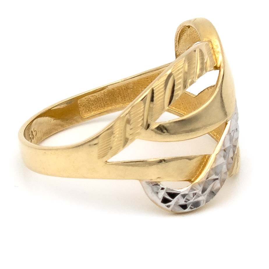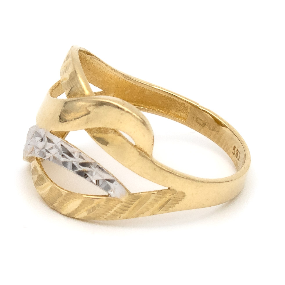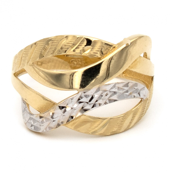 Inelul cu linii suprapuse din aur galben și alb 14K este despre armonie – între contrast și echilibru, între clasic și contemporan.