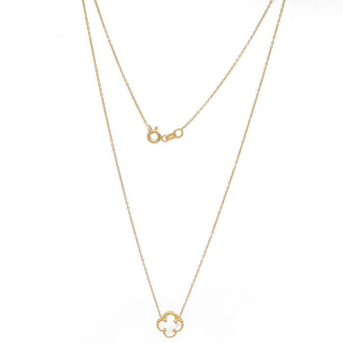 Colier Trifoi Alb Aur 14k
